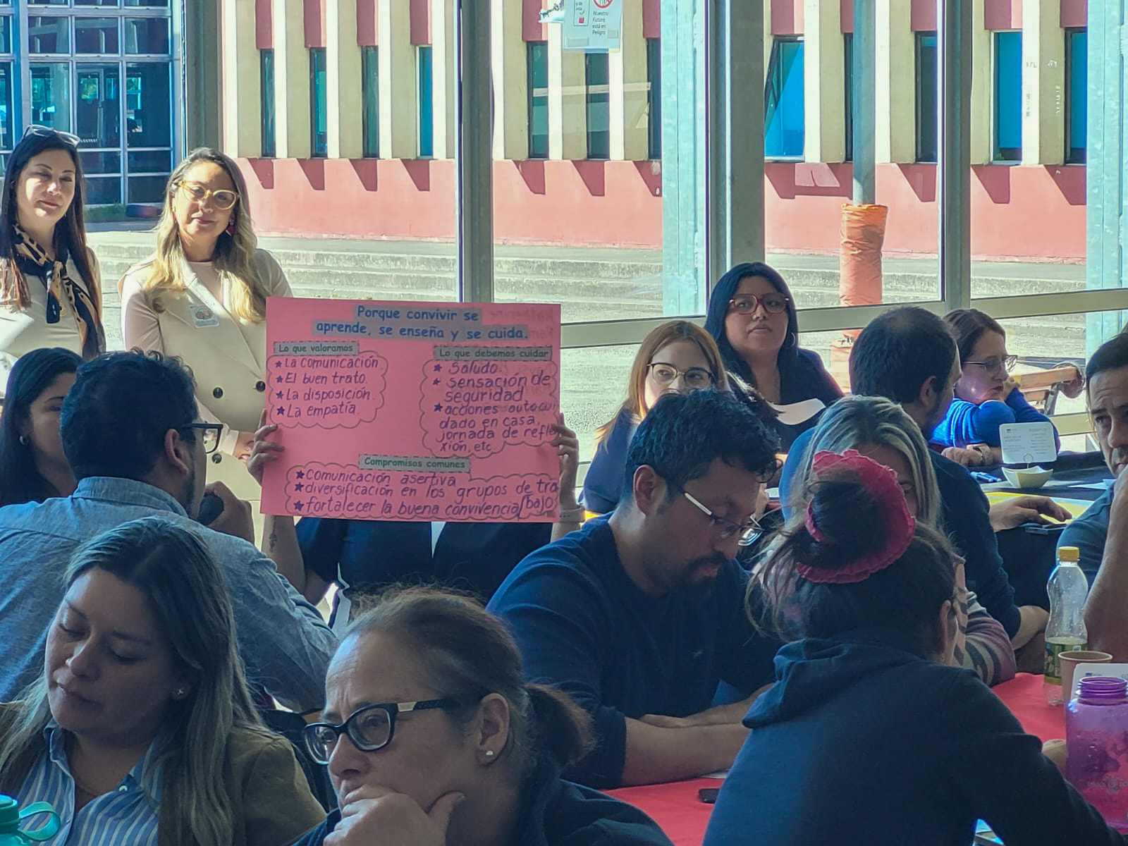 Bajo el lema “Convivir se aprende, se enseña y se cuida”, docentes y asistentes de la educación participaron activamente en espacios de diálogo y análisis, abordando temáticas vinculadas a la valoración de la comunidad, el cuidado entre adultos y la reflexión sobre prácticas que fortalecen un clima de respeto y confianza.